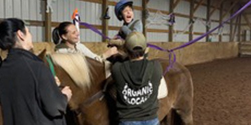 Mounted activities make him use his core muscles more effectively. He must communicate and cooperate with his horse and with other riders to complete shared tasks and achieve common goals. He needs to remain calm to be successful with the horse, and the horse provides him with an overall sense of well-being and systemic regulation. Riding helps him feel competent, confident, and comfortable in himself.