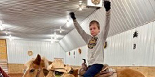 Our son has been riding with HOJ since April 1, 2021, nearly three years. His equine therapy with HOJ has included ground-based activities caring for horses, but has been primarily mounted-based activities. We think riding greatly advantages his therapy. He’s continually improving his social and his horsemanship skills.